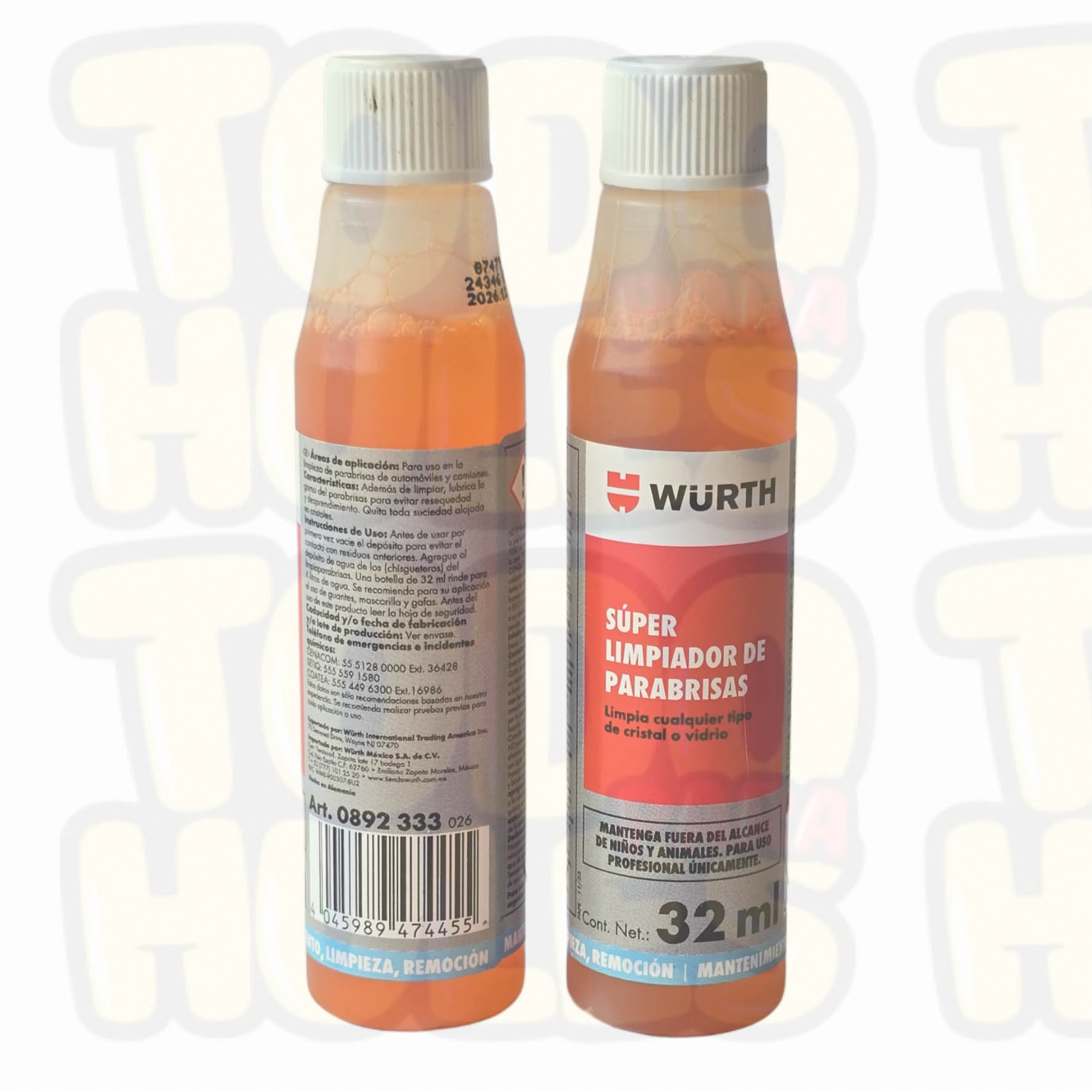 Par súper limpiador de parabrisas, concentrado de shampoo que ayuda a limpiar cualquier tipo de cristal o vidrio, además, lubrica las gomas del parabrisas para evitar resequedad y desprendimiento.
